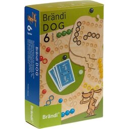 Brändi Dog ist ein spannendes Brettspiel mit Langzeitmotivation, das im Team und mit Bridge-Karten gespielt wird. Es hat Ähnlichkeiten mit "Eile mit Weile", ist aber durch die taktischen Elemente viel variantenreicher. Dabei wird man vom Teampartner unterstützt und von der Gegenpartei "heimgeschickt". Die gezogenen Karten bestimmen wie man weiterkommt. Die Kartenwerte können auf Spielzüge oder auf die Teampartner aufgeteilt werden. Gewinner ist das Team, welches geschickt zusammenspannt und als erstes die Murmeln ins Ziel bringt. Das komplette Spiel in einer Schachtel verpackt. Spielgenuss pur für sechs Personen. Gespielt wird in zwei 3er oder in drei 2er Teams. Ausprobieren ist angesagt.