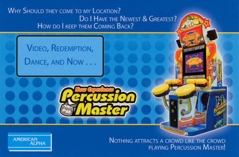 Percussion Master ist eine Schlagzeugmaschine von IGS. Die Spieler*innen müssen die Trommeln im Takt der Musik schlagen, wobei ein gutes Timing und ein gutes Rhythmusgefühl erforderlich sind.