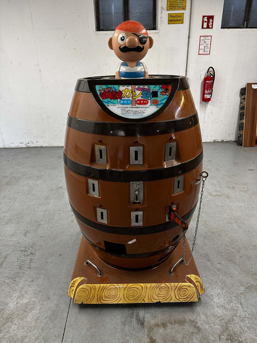 Dieser japanische Arcade-Automat ist die XL-Version des beliebten Kinderspiels Pop Up Pirate. Das Spiel findet ihr auch in unserem Brettspielcafé.