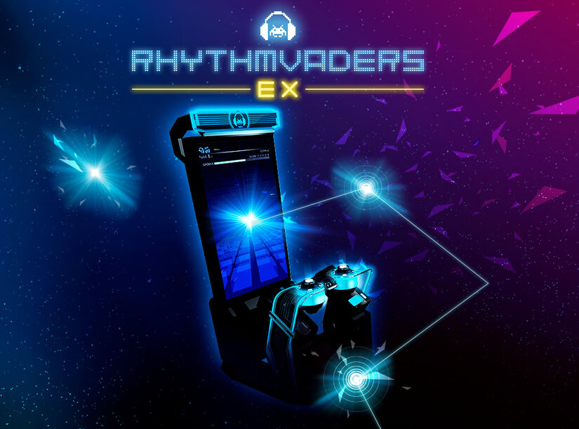 Rhythm Invaders ist eine musikalische Attraktion. Die zwei Controller kombinieren Tasten- und Schiebefunktionen.