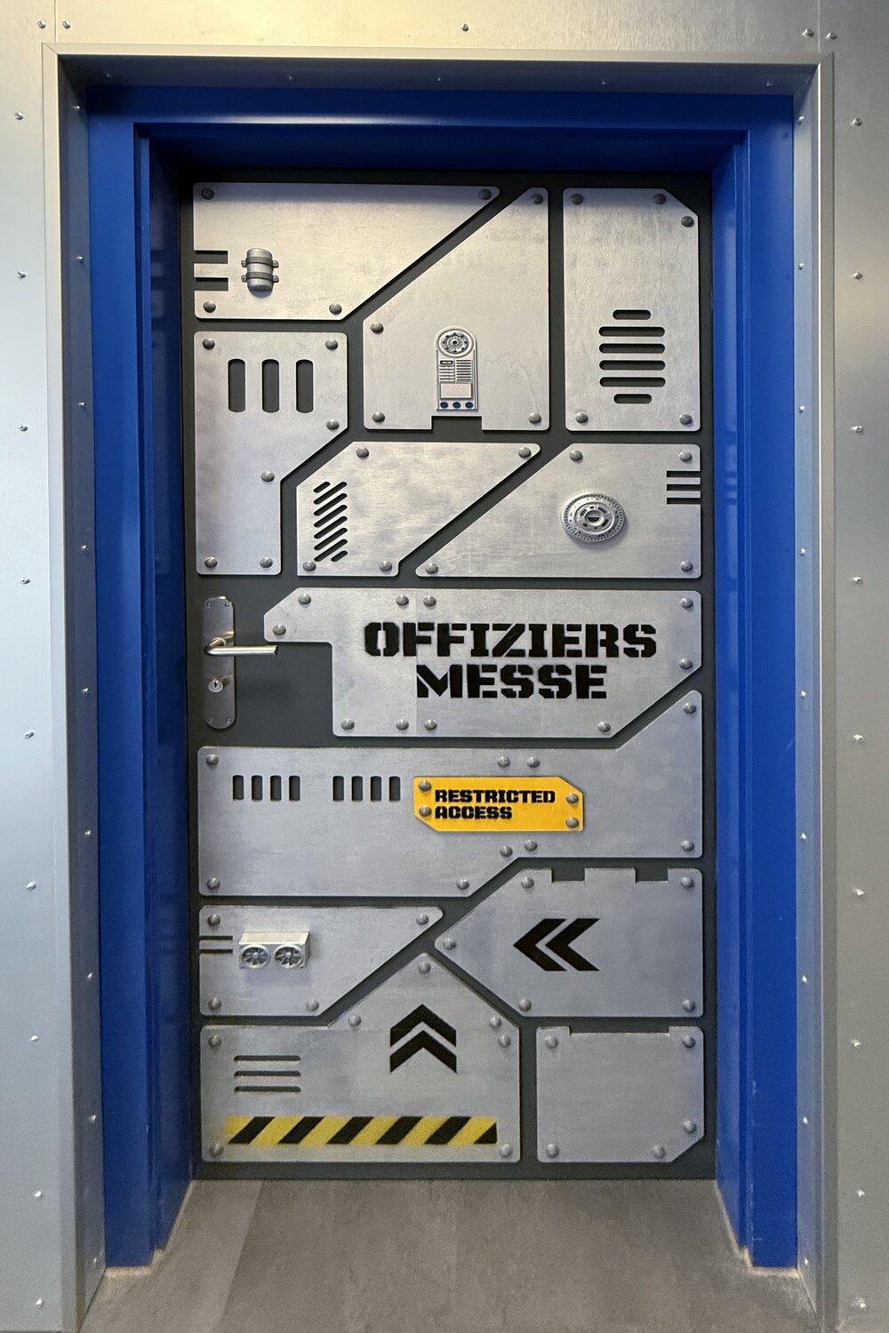 Die Offiziersmesse ist unser neuer, futuristischer Konferenzraum – ein exklusiver Rückzugsort für bis zu 8 Personen. Ob für kreative Meetings, besondere Spieleabende oder einfach einen stilvollen Ort zum Zusammensitzen:
